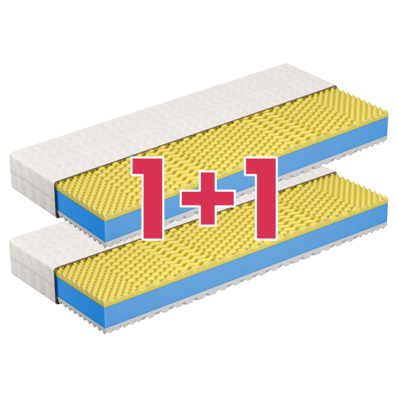 Při akci 1+1 do košíku vkládáte 1 kus akce a obdržíte 2 kusy matrací, pokud do košíku vložíte 2 kusy akce, obdržíte 4 kusy matrací.