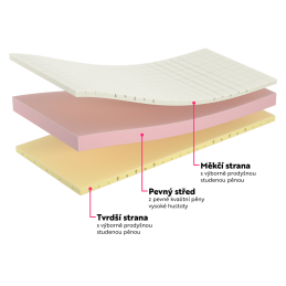 Matrace má na každé straně jinou tuhost, tím pádem ji můžete jednoduše otočit a zvolit si tuhost, která Vám právě vyhovuje.