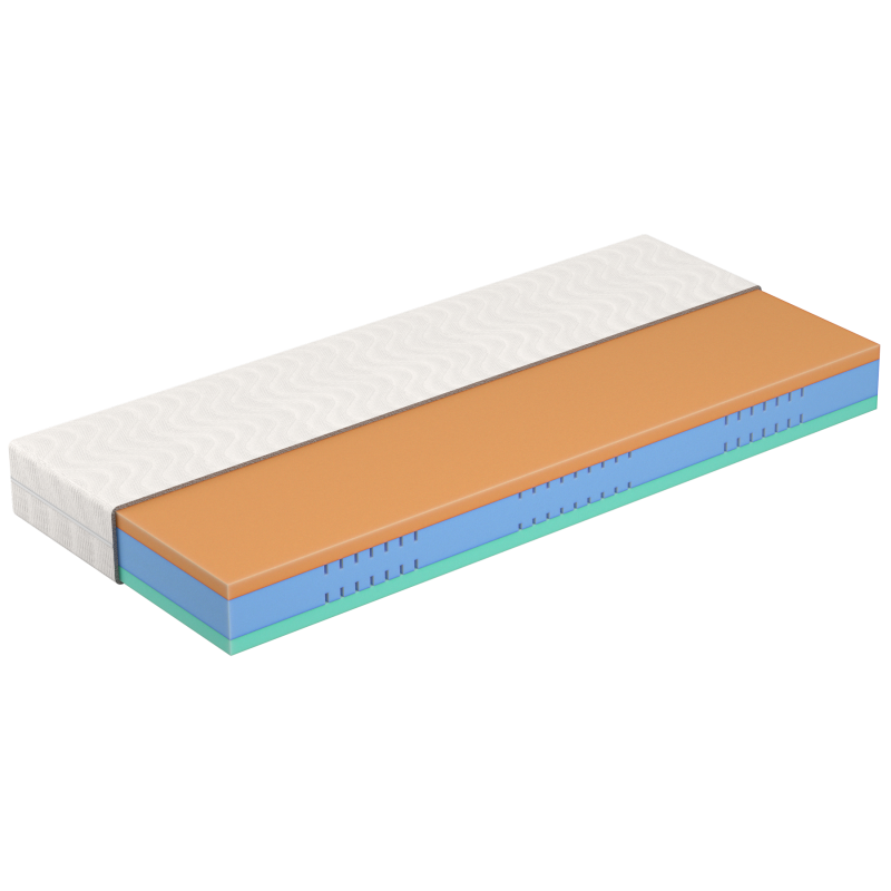 Středně tuhá horní vrstva z pružné a příjemně poddajné pěny, která se přirozeně přizpůsobí tělu.